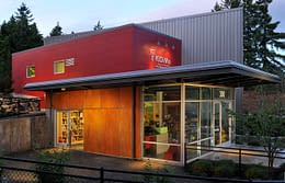 The Kid’s Discovery Museum (KiDiMu) is a two-story steel structure building adjacent to the Bainbridge Island Museum of Art. The building is composed of three basic rectangular forms, each having a different material character. Inspired by a child’s block toy, the forms intersect to reveal the playful nature of the museum inside. KiDiMu is a nonprofit children’s museum on Bainbridge Island and is cherished by the tight-knit community. Large glass panels reveal the museum’s lobby and retail space within the entry. Two floors of exhibits fill the clear-span volumes, allowing for never-ending fun and exploration with the interactive exhibits.