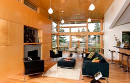 This renovation went beyond the average remodel; it was a complete “lifestyle correction”, as the owner put it. The existing house lacked a central space for members of the family to naturally congregate, and the client found it uncomfortable and confining. The clients were open to dramatic change, so the design team embraced this opportunity, removing walls and raising ceilings to create an open concept plan. 13-foot ceilings and floor-to-ceiling windows create a sense of spaciousness and light while creating a new focal space where the family could gather in the home. Radiant floor heating was installed, creating efficient use of energy and reduction of utility bills. At night the home glows like a lantern, embodying a strong sense of warmth and openness. Asian influences were used throughout the design process to create feelings of serenity and tranquility. The result is a home in which the family truly feels comfortable in.