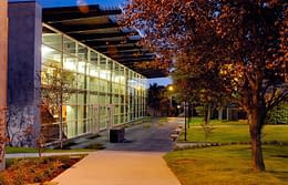 During the day, the fourteen-foot overhang protects students walking across campus; in a sense, the building reaches out to meet you. In the evening hours when the lights are on, it appears to glow from within – fulfilling the client’s wishes that it be a “lantern of hope.”
